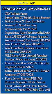AJP, anak ketiga dari Ibunda Hj. Nurlin Surunuddin, SH (Anggota DPRD Kota Kendari periode 2014 – 2019) yang memiliki segudang pengalaman di dunia kewirausahaan dalam dan luar negeri ini, mencoba dan yakin mengikuti jejak ke dua orang tua tercintanya yang telah sukses menyerap dan memperjuangkan suara masyarakat melalui wakil rakyat.