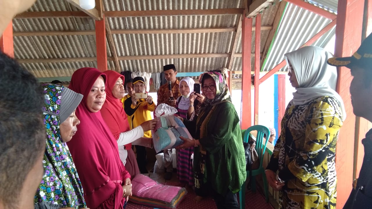 Bantuan yang diberikan berupa mukena, sarung, pembalut perempuan, pluit, gamis, pakaian dalam dan lainnya.