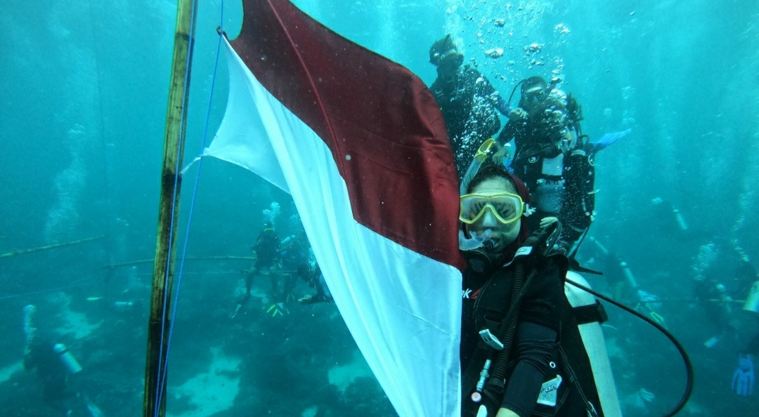 Wakatobi, Inilahsultra.com – Sebanyak 74 penyelam menggelar upacara pengibaran bendera merah putih di bawah laut dalam rangka Hari Ulang Tahun (HUT) ke 74 Kemerdekan Republik Indonesia.