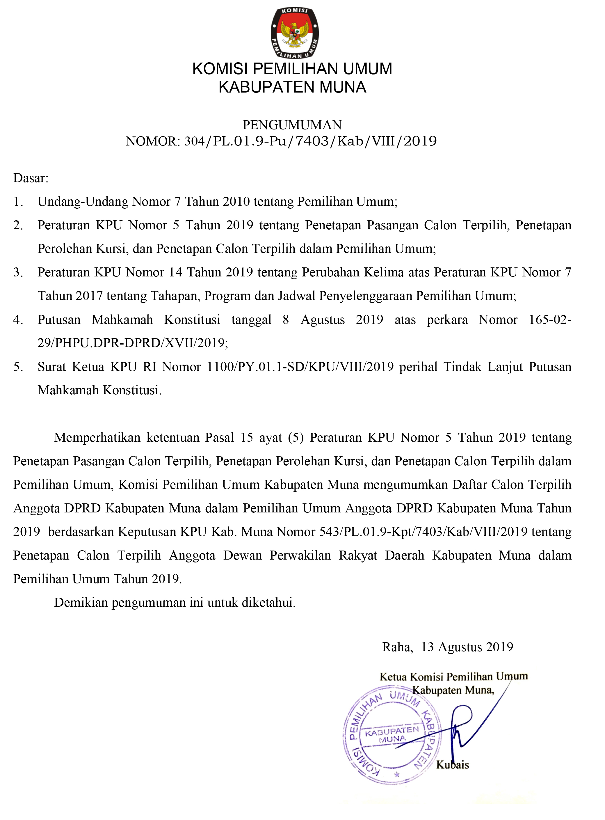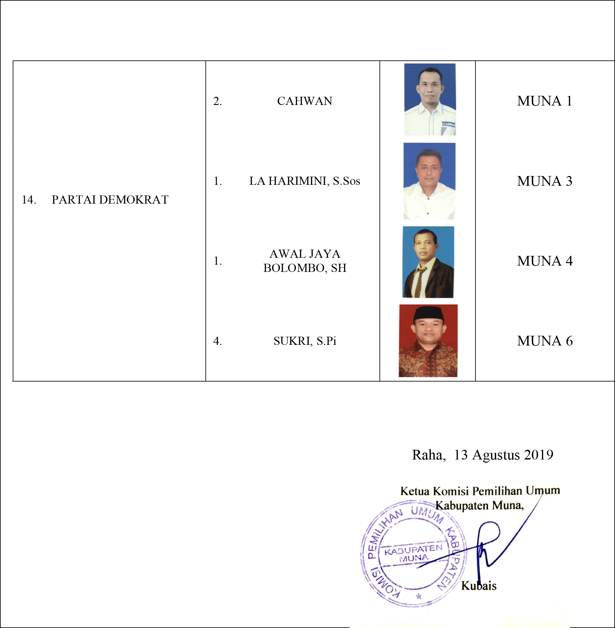 DAFTAR CALON TERPILIH ANGGOTA DPRD KABUPATEN MUNA HASIL PEMILU TAHUN 2019