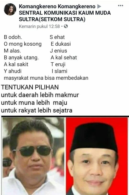 Ardian menyebut, selain postingan yang menghina bupati pemilik akun ini juga sering memposting berita-berita yang cenderung mendiskreditkan Bupati Muna.