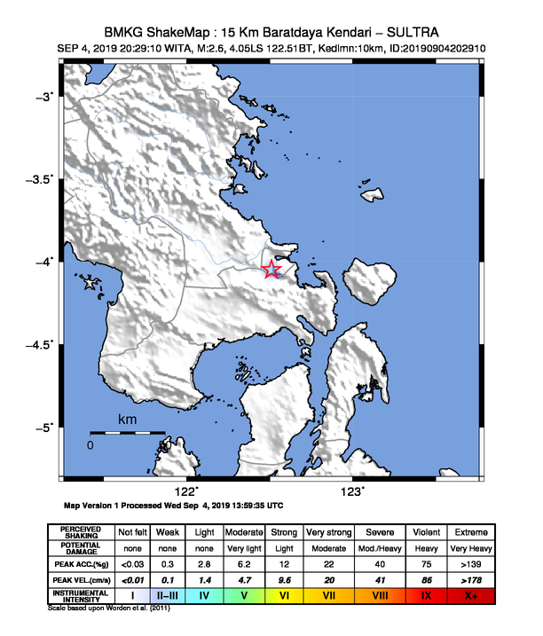 Kendari, Inilahsultra.com – Gempa bumi berkekuatan 2,6 mengguncang Kota Kendari malam ini, Rabu 4 September 2019 sekira pukul 20:29:10 WITa.