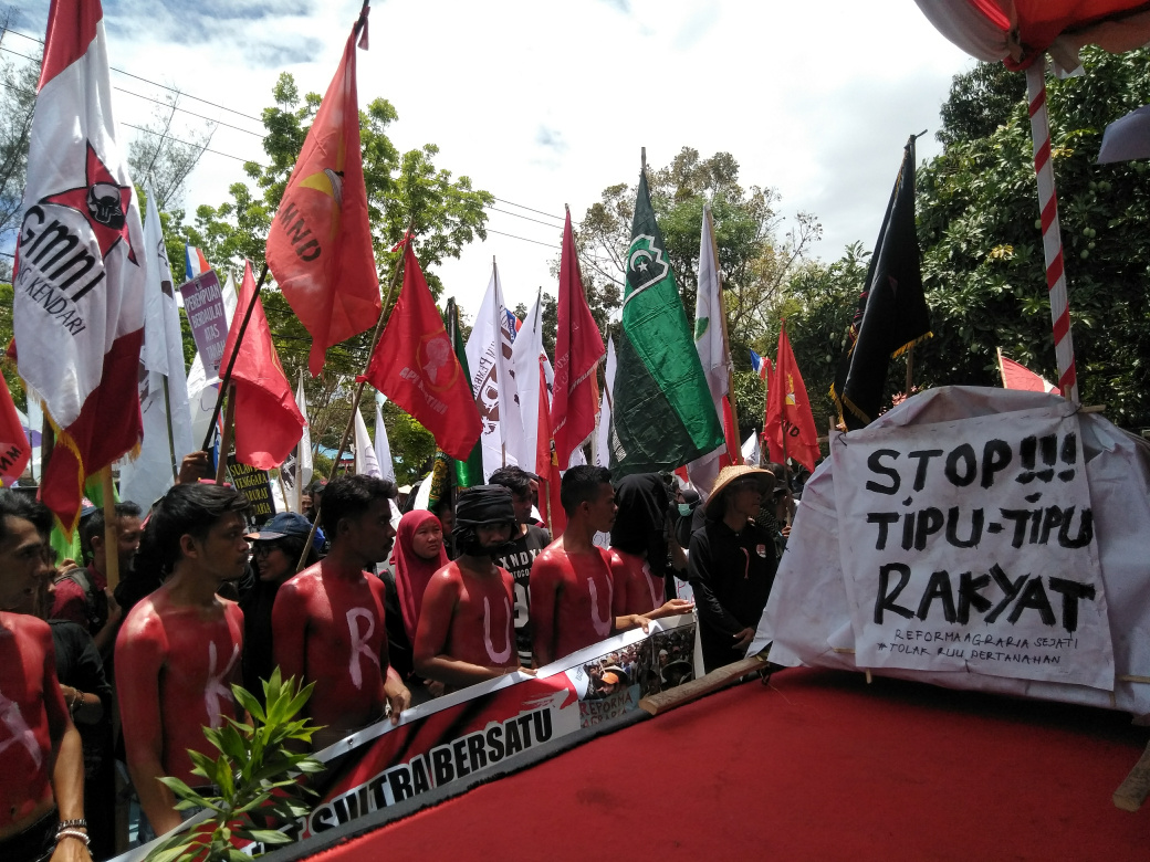 Demo yang digelar ini sebagai bentuk sikap penolakan atas revisi Undang-Undang Pertanahan yang sementara bergulir di DPR RI.