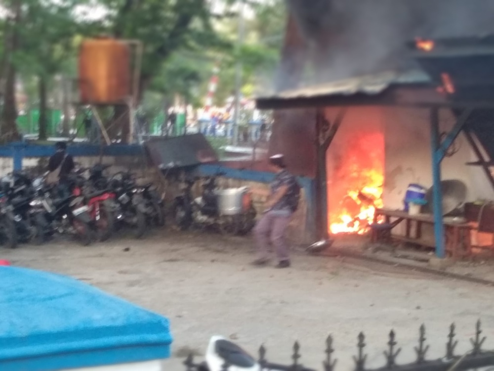 “Waktu lewat tadi, saya kaget melihat pos polisi dibakar dan semua motor yang ditampung di pos polisi itu telah dibakar,” kata salah seorang warga tidak mau menyebutkan namanya di tempat kejadian.
