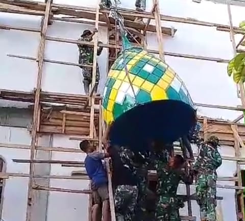 Satgas TMMD Pasang Kubah Masjid Masiri Busel