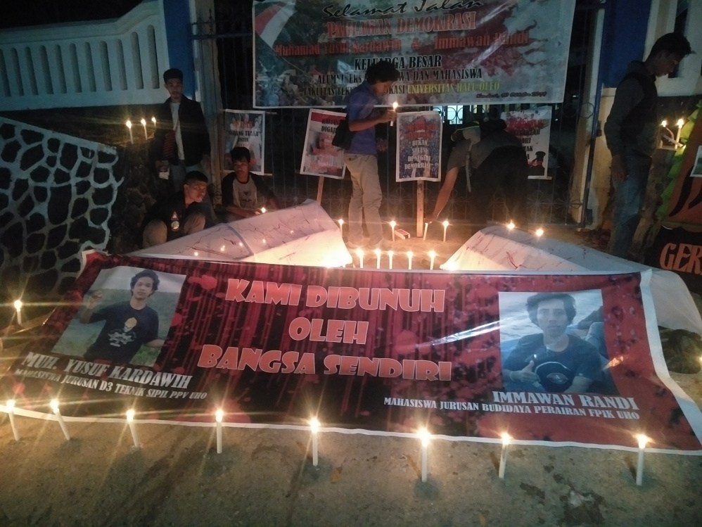 Alumni dan mahasiswa teknik UHO menggelar doa bersama di lokasi meninggalnya Yusuf dan Randi.
