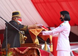 Kendari, Inilahsultra.com- Gubernur Sulawesi Tenggara (Sultra) Ali Mazi menjadi inspektur upacara bendera dalam rangka HUT ke-77 RI, di pelataran Rumah Jabatan Gubernur Sultra, dengan Tema Nasional “Pulih Lebih Cepat, Bangkit Lebih Kuat”, Rabu 17 Agustus 2022.
