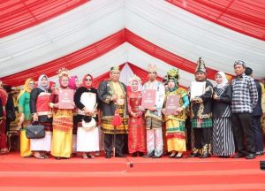 HUT RI ke-77 kali ini, tampak Ali Mazi mengenakan pakaian adat daerah Buton, ini bersamaan dengan para tamu hadirin juga mengenakan pakaian adat daerah-daerah Sultra.