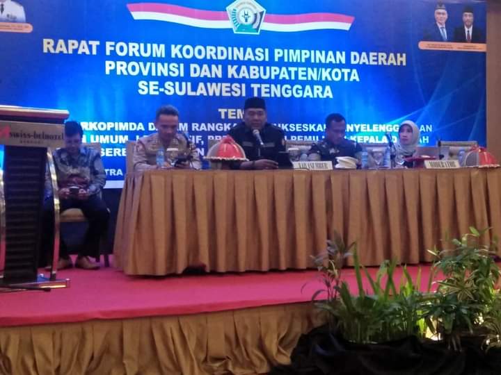 Rakor ini mengusung tema “Peran Forkopimda dalam rangka menyukseskan penyelenggaraan Pemilihan umum, Legislatif, Presiden, dan Pemilihan Kepala Daerah serentak di Provinsi Sultra”.