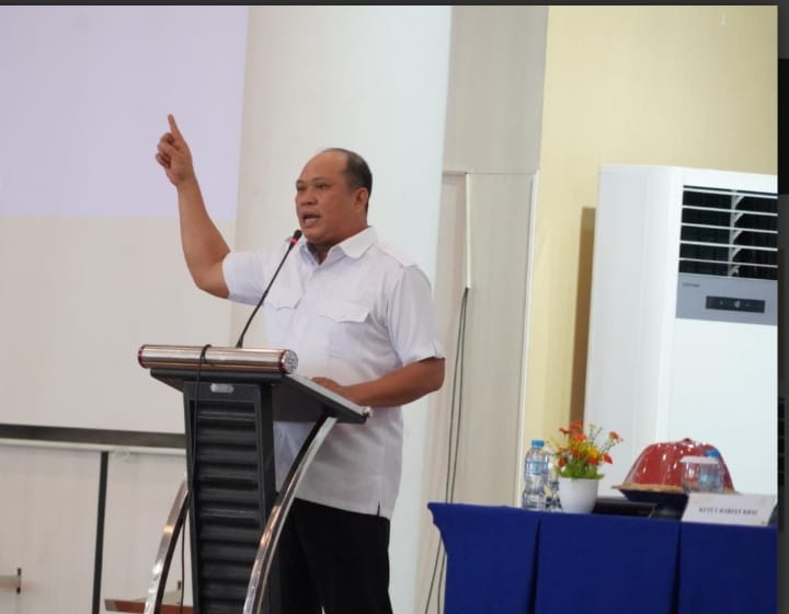 Kendari, Inilahsultra.com – Bupati Konawe Utara (Konut) Ruksamin memimpin Rapat Koordinasi (Rakor) pemantapan dan pelepasan kontingen atlet, pelatih, dan official Kabupaten Konawe Utara yang akan mengikuti Porprov XIV Sulawesi Tenggara (Sultra) yang dilaksanakan di Kota Baubau dan Kabupaten Buton yang akan digelar pada 26 November 2022.