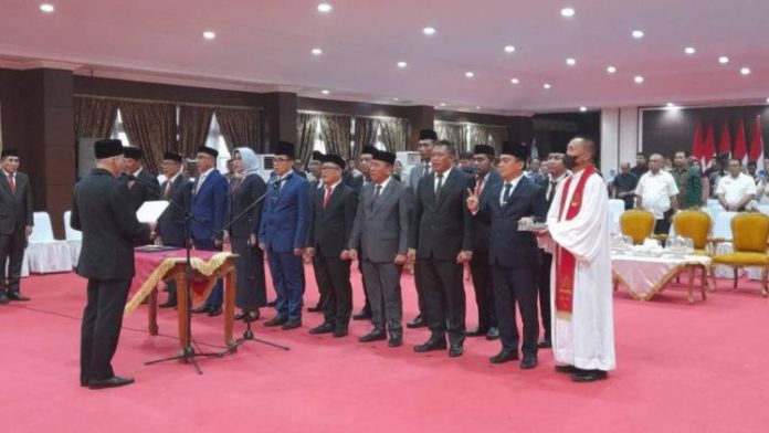 Pelantikan dan pengambilan sumpah jabatan dipimpin Sekretaris Daerah Sulawesi Tenggara, Drs. Asrun Lio, M.Hum., Ph.D., di Aula Rumah Jabatan Gubernur Sulawesi Tenggara, Jumat 3 Februari 2023.