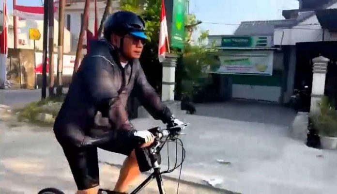 Teranyar, orang nomor satu di Bumi Anoa ini bersepeda dari rumah jabatan menuju Kantor Gubernur untuk bekerja, Rabu 25 Oktober 2023.
